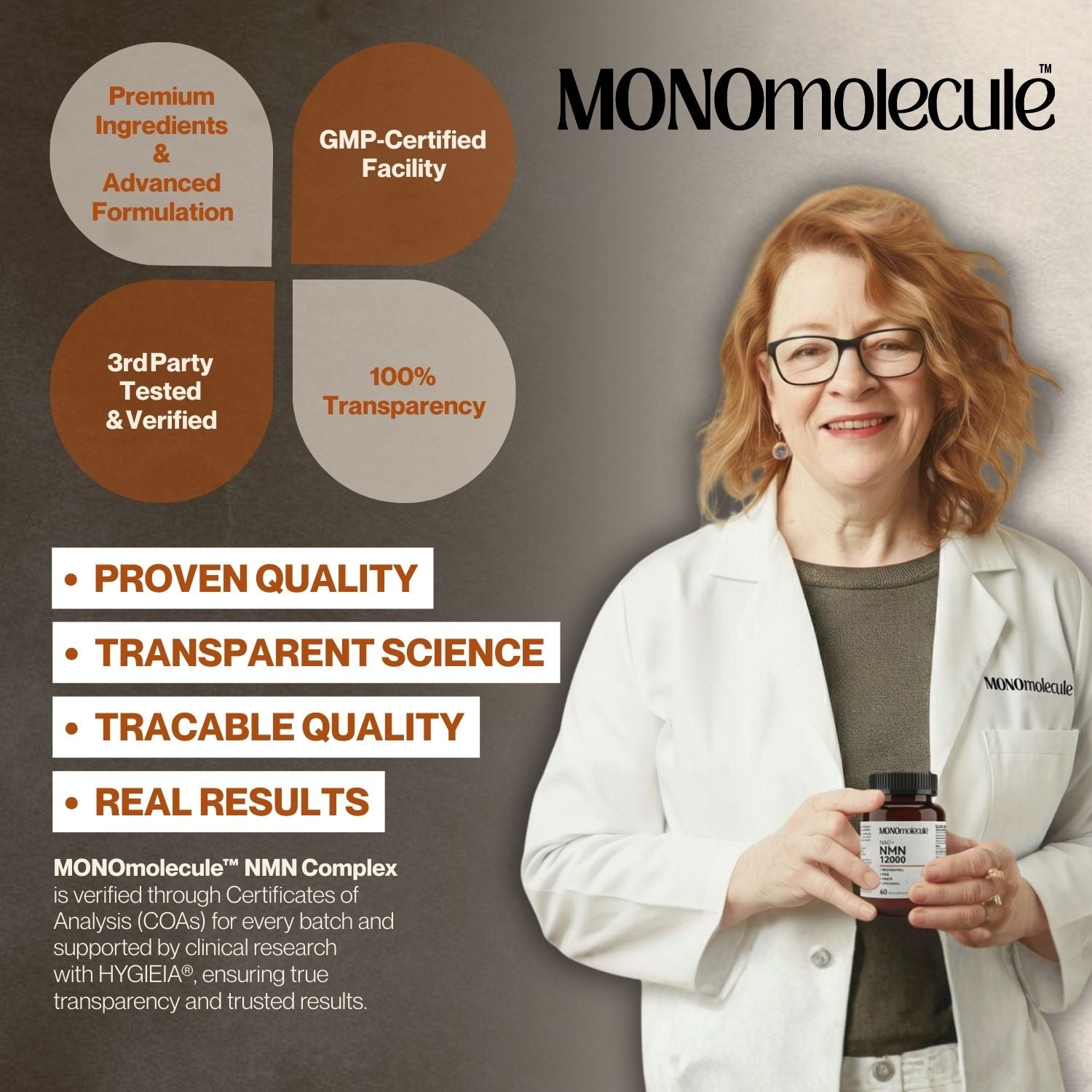 MONOmolecule™ NMN Complex stands apart through its precision formulation, verified purity, and scientific validation.